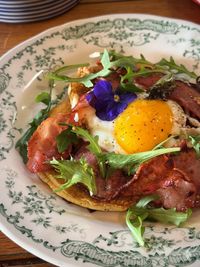 Commencez la journée en pleine lumière avec le Sunny Side Up, un classique irrésistible où le jaune d'œuf, doré et onctueux, se fond dans le croustillant du bacon salé.
